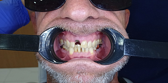 Удалены зубы, восстановление которых было невозможно. Выполнена одномоментная установка имплантов и установлены коронки. Проведена подготовка под дальнейшее лечение.