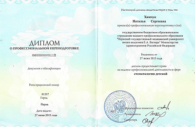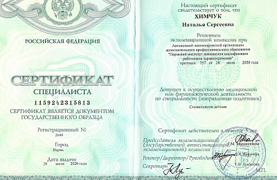 Пермский государственный медицинский университет им. акад. Е.А. Вагнера (стоматология детская), повышение квалификации