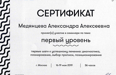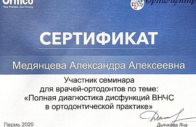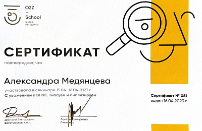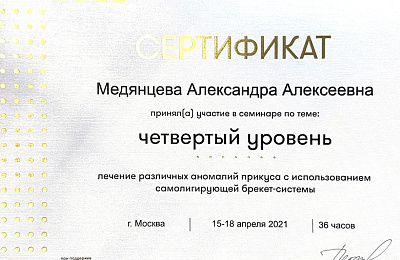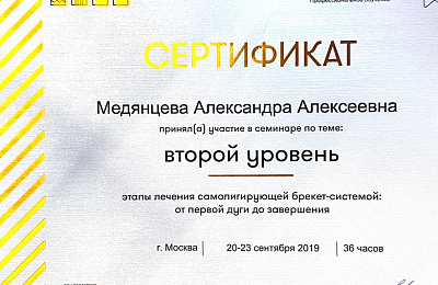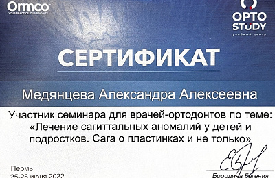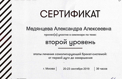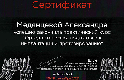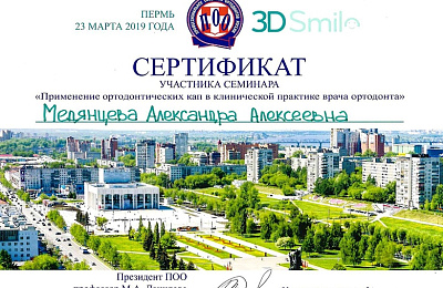 - Регулярно совершенствует свои профессиональные знания и умения, посещая различные семинары и мастер-классы ведущих ортодонтов России.