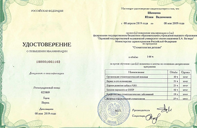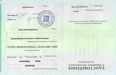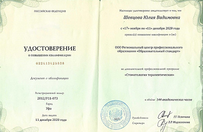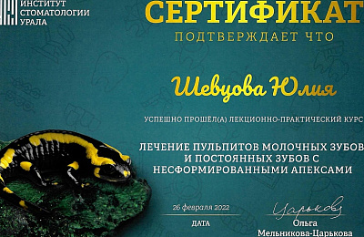 ООО "Институт стоматологии Урала", программа повышения квалификации "Лечение кариеса, пульпитов и периодонтитов"
