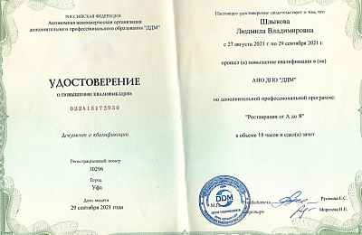 АНО ДПО «ДДМ» - повышение квалификации по доп. профессиональной программе «Реставрация от А до Я»