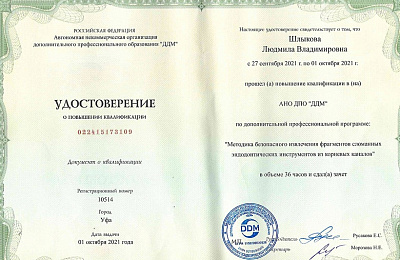 АНО ДПО «ДДМ» - повышение квалификации по доп. профессиональной программе «Методика безопасного извлечения фрагментов сломанных эндодонтических инструментов из корневых каналов»