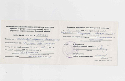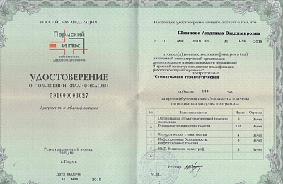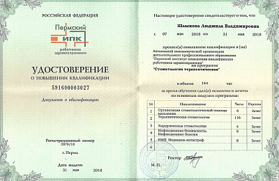 "Пермский институт повышения квалификации работников здравоохранения (стоматология терапевтическая)